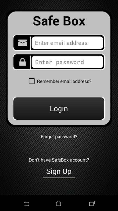 Safebox ईमेल, बैंक खातों, ई की दुकान, जैसे खातों के बारे में जानकारी के लिए भंडारण प्रदान करता है जो एक सॉफ्टवेयर अनुप्रयोग है eBanking, Mbanking, कंप्यूटर, नेटवर्किंग, वेब खातों, विभिन्न स्थानों पर डेटा बंटवारे से एक बहुत ही सुरक्षित तरीके से उनके पासवर्ड आदि।