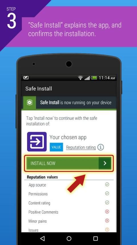 Safe Install validates the installation of any app you want. It then guides you through the installation, so you can be confident about exactly what the app does before it’s installed. Avoid apps that ask for too many permissions, or don’t work properly.