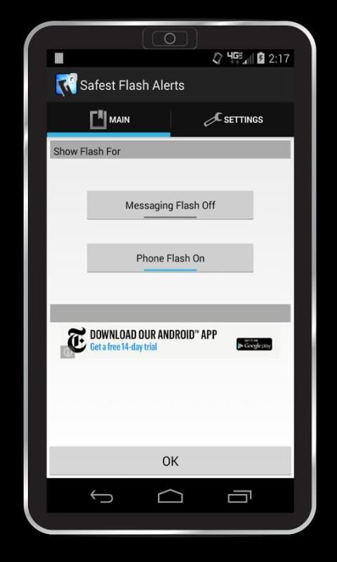 सबसे सुरक्षित फ्लैश अलर्ट जो पलक फ्लैश लाइट संकेतों डिवाइस बज रहा है या एक नया पाठ संदेश प्राप्त हुआ है, जबकि बनाने के लिए अपने कैमरे का फ्लैश का उपयोग करेगा एक नया आवेदन है।