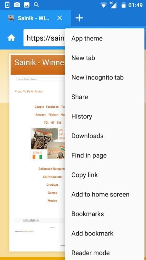 सैनिक ब्राउज़र तेजी से लोड हो रहा है गति, HTML5 वीडियो प्लेयर, टैब बार, साइडबार, गुप्त ब्राउज़िंग और फ्लैश प्लेयर के साथ Android के लिए सर्वश्रेष्ठ भारतीय इंटरनेट textra एक्सप्लोरर ब्राउज़र है।