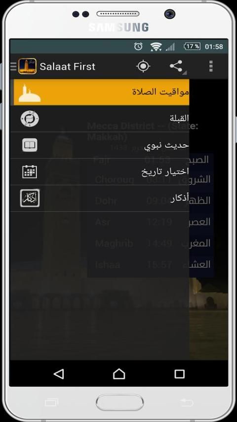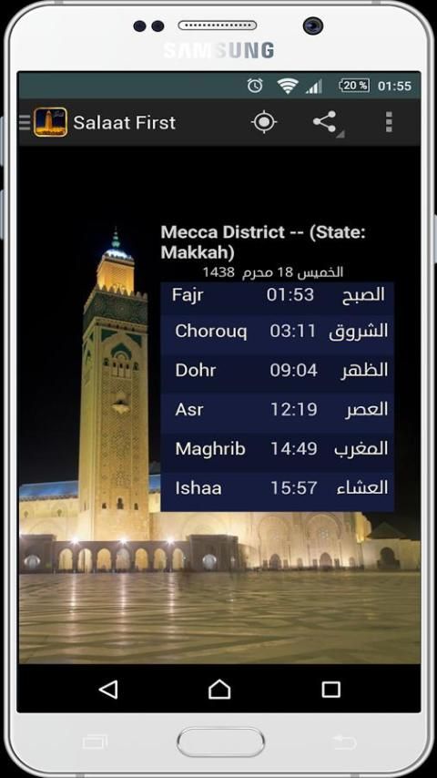 सबसे पहले सलत 2017 जीपीएस समर्थन के साथ प्रार्थना के समय के लिए अनुमति देता है और प्रत्येक प्रार्थना के लिए स्वचालित रूप से चुप मोड को सक्रिय करें। आवेदन अन्य दुनिया भर में जाना संगठनों के अलावा धर्मादा और मोरक्को के इस्लामी मामलों के मंत्रालय के गणना पद्धति के अनुसार कार्यक्रम प्रदान करता है। आवेदन विशेषताएं: