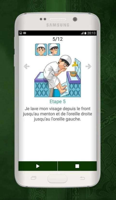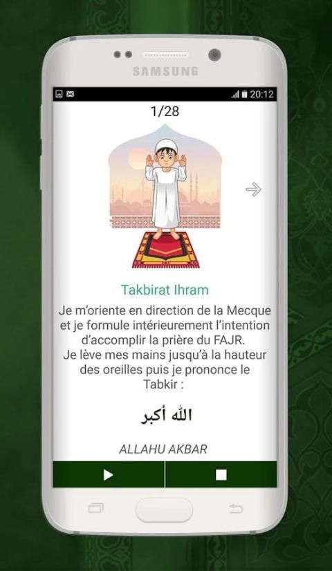 विभिन्न अनिवार्य और सामयिक नमाज की समझ की सुविधा के लिए। आवेदन तीन अतिरिक्त भाषाओं में बनाया गया है: अरबी, फ्रेंच और अंग्रेजी स्वर मुस्लिम बच्चों की मदद करने के साथ ही बड़े रूप में आसानी से स्नान अल Wudu करने के लिए " 'और विशेष रूप से नए धर्मान्तरित जो गले लगा लिया प्रार्थना सही तरीके से जानने के लिए हाल ही में धर्म: इस्लाम।