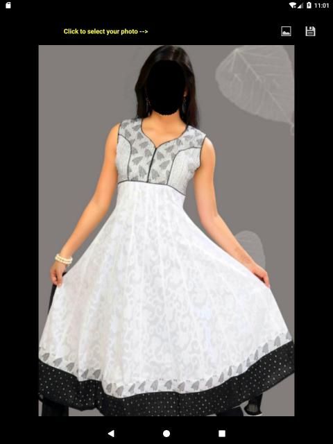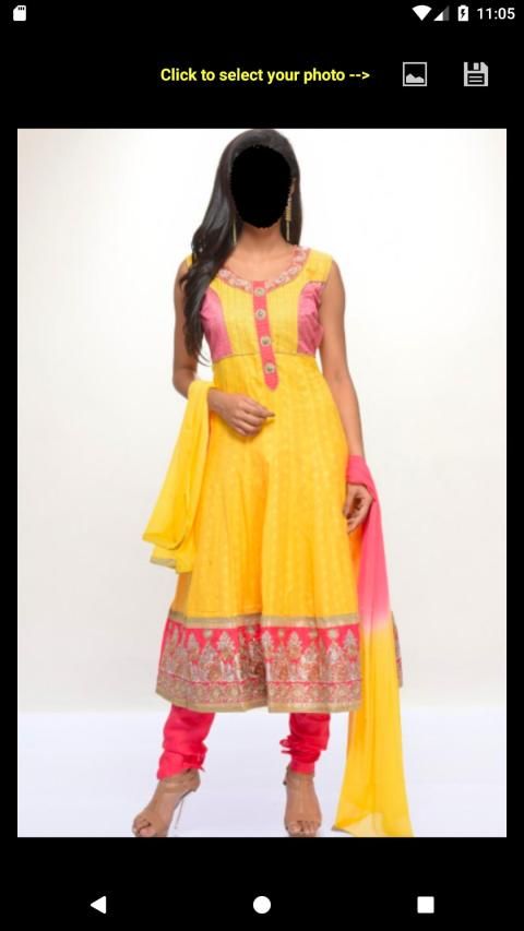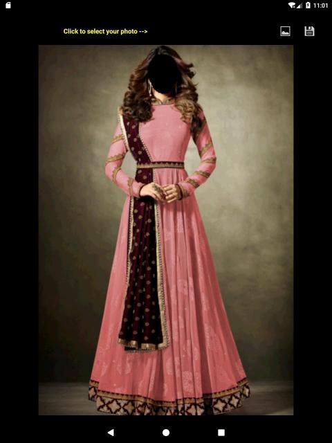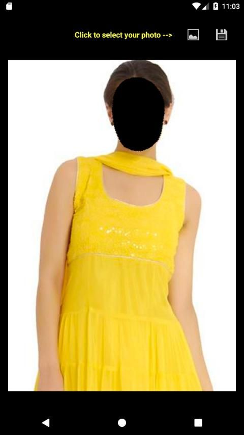 Select a dress, select your photo from gallery, adjust your face and save. Done!