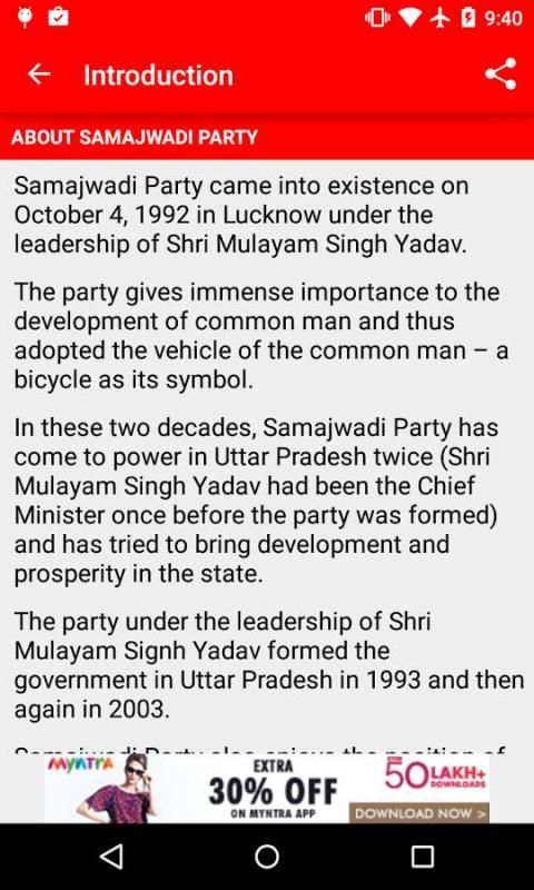 I would like to recommend you an application with large number of downloaders. 20,000+ users downloaded Samajwadi Party latest version on 9Apps for free every week! You will feel better when you start playing This hot app was released on 2017-07-07. Be sure that you check your current app before you start a run.