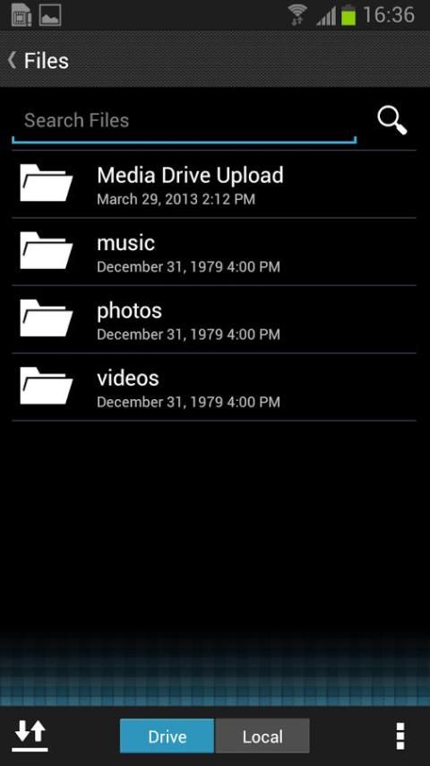 नोट: मीडिया ड्राइव किसी भी प्रकार की फ़ाइल स्टोर कर सकते हैं। हालांकि, इस तरह की फिल्मों और संगीत के रूप में सामग्री स्ट्रीमिंग अपने मोबाइल डिवाइस द्वारा प्रदान की फाइल समर्थन पर निर्भर है।
