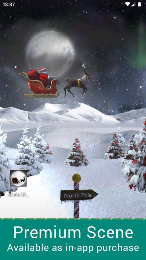 - The Premium available for purchase North Pole scene, with a preview available, where Santa flies over the snow covered trees and cozy igloos. You can find the new scenes in the wallpaper settings.