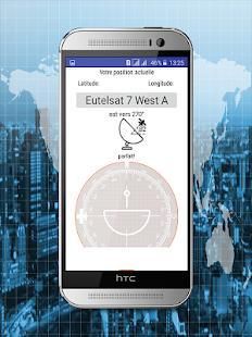 SatFinder (Satellite Finder) satellite finder app is a tool which will help you to set up satellite dish. It will give you azimuth, elevation and LNB tilt for your location (based on GPS) and chosen satellite from list. The result is shown both as numeric data and graphical on google maps. It has also built in compass which will help you to find proper satellite azimuth. It also can use augmented reality to show where is satellite on camera view.