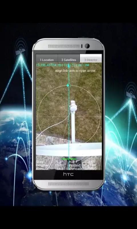 बस अपने फ़ोन में जीपीएस सक्रिय करने, अपने जीपीएस स्थान डालें वांछित टीवी उपग्रह या एंटीना स्थान का चयन करें और आकाश के लिए अपने फोन को इंगित को लक्षित (लगता है) टीवी उपग्रह है। जब सफेद गेंद सफेद सर्कल में है और सियान गेंद सियान मंडली में शामिल है आप उपग्रह मिल गया है। संरेखित, दिगंश में, प्रदर्शन टेलीफोन पर सियान तीर और परवलयिक एंटीना से उपग्रह डिश की भरपाई हाथ उपग्रह के साथ दिगंश में गठबंधन है।