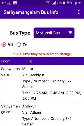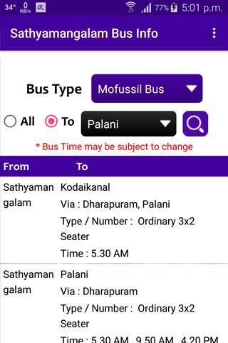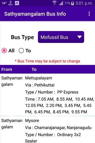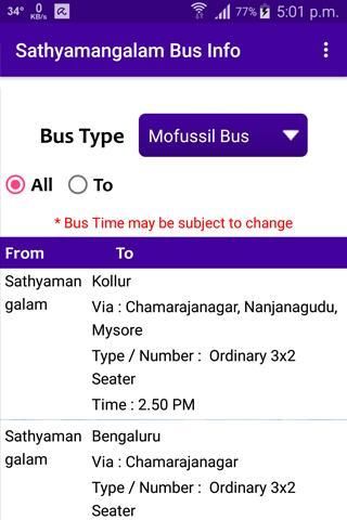 इस एप्लिकेशन को सत्यमंगलम मुफस्सिल बस और टाउन बस के बारे में सभी जानकारी प्रदान करते हैं।