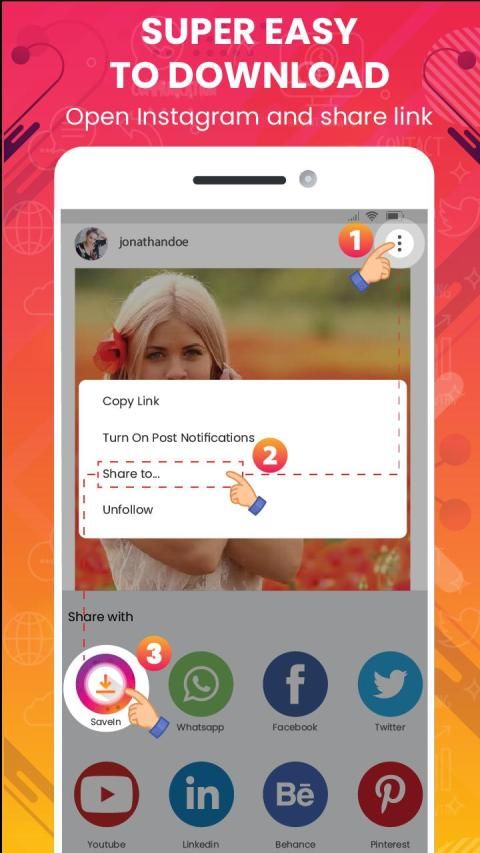 Just imagine you are using Instagram and scrolling down the feed and you want some photo or video to save in your phone to watch later, or share with friends, or repost to Instagram or other social media. Then how? With SaveIn, download your favorite Video and Photo from Instagram and IGTV and you can also repost it easily.