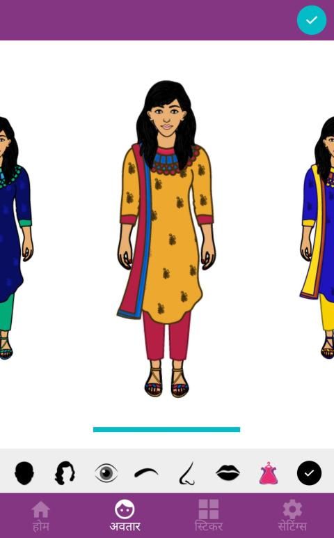 ● दिये गये क्रम में जैसे त्वचा, बाल तथा आंखों का रंग चुनकर अपना डिजिटल अवतार बनाएं ।