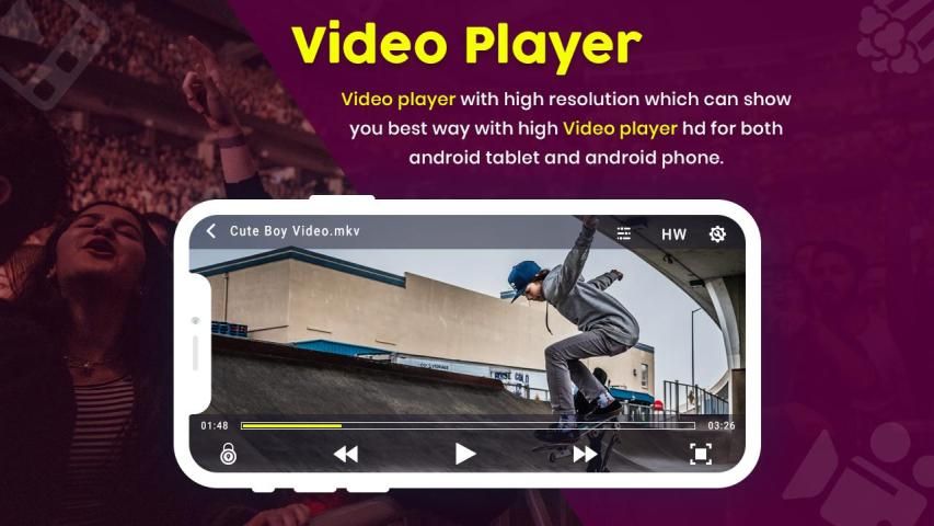 पूर्ण सुविधाओं के साथ एचडी वीडियो प्लेयर एक सरल लेकिन शक्तिशाली और तेज़ वीडियो प्लेयर है, जिसे आप बिना किसी परेशानी के अपने एंड्रॉइड डिवाइस पर लगभग सभी प्रारूपों के एचडी और अल्ट्रा एचडी वीडियो चला सकते हैं! एचडी वीडियो प्लेयर सबसे छोटे आकार और छोटे मेमोरी उपयोग के साथ हार्डवेयर डिकोडिंग का उपयोग करता है, जो आपके वीडियो को अधिक तेजी से और स्मूद एचडी प्लेबैक के लिए तैयार करता है!