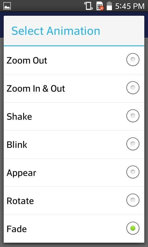 * कैसे झपकी आदि बाहर ज़ूम, शेक, जैसे स्क्रीन पर डरावना छवि प्रकट करने के लिए एनिमेशन का चयन करें ...