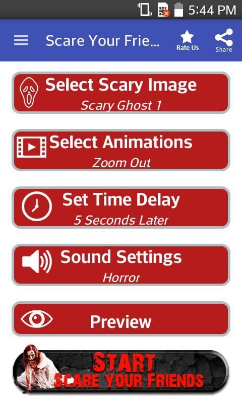 * Choose start scare your friends after a specified time it will appear to scare your friends automatically...