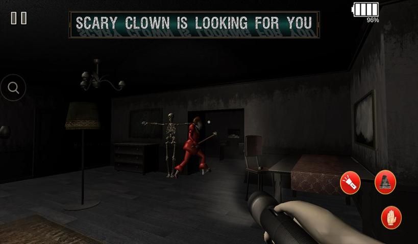 Scary clown is walking in haunted house, Don't make noises and don't go infront of evil clown otherwise he'll kill you.