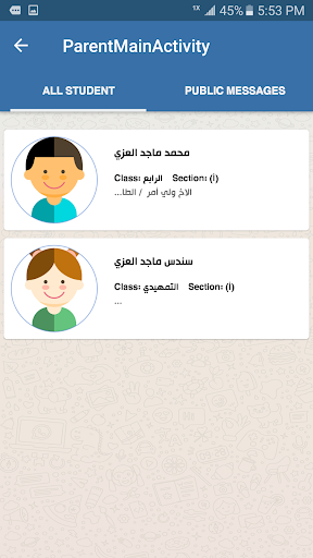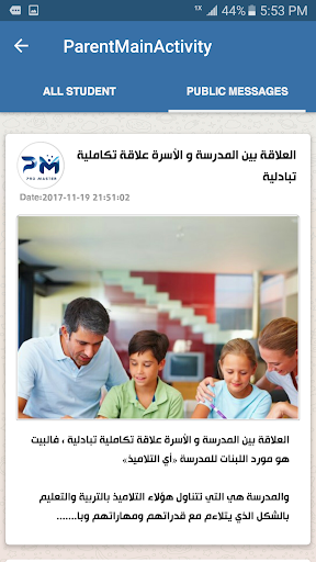 system between schools and the parents .The system facilitates an easy attendance process and sends attendance as well as homework, congratulation messages(text and images ) as well as publishing school activities .Parents receives the messages through an application .