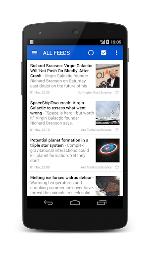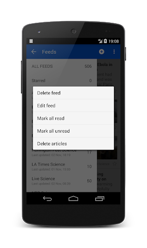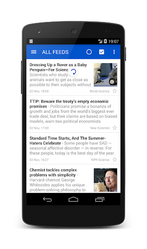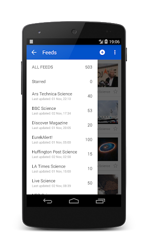 फ़ीड स्वचालित रूप से अपडेट होते हैं और ऐप सूचित करता हैजब पढ़ने के लिए नई जानकारी होती है (बंद किया जा सकता है)।