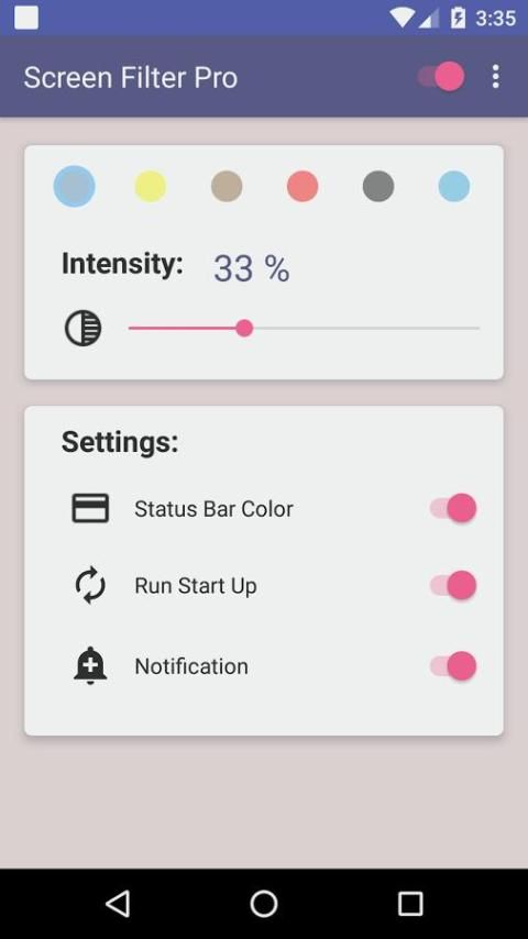 स्क्रीन फ़िल्टर प्रो app आप स्क्रीन पर नरम रंग की एक परत बनाने में मदद करेंगे, app आप अधिक eyestrain का समर्थन कर सकते हैं।