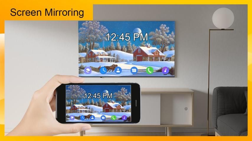 screen mirror your phone screen to smart TV. Screen Mirroring connect your phone screen to tv. Screen Mirroring used to play videos song and play game it will Display Phone Screen On smart TV.