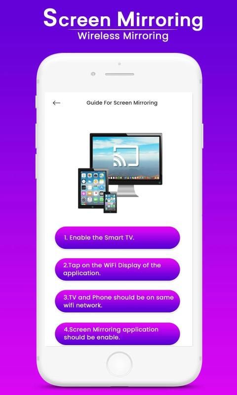 स्मार्ट टीवी मिररिंग ऐप स्मार्ट टीवी / डिस्प्ले या वायरलेस डोंगल या एडेप्टर पर आपके एंड्रॉइड फोन या टैब की स्क्रीन को स्कैन और मिरर करने में आपकी सहायता करेगा।