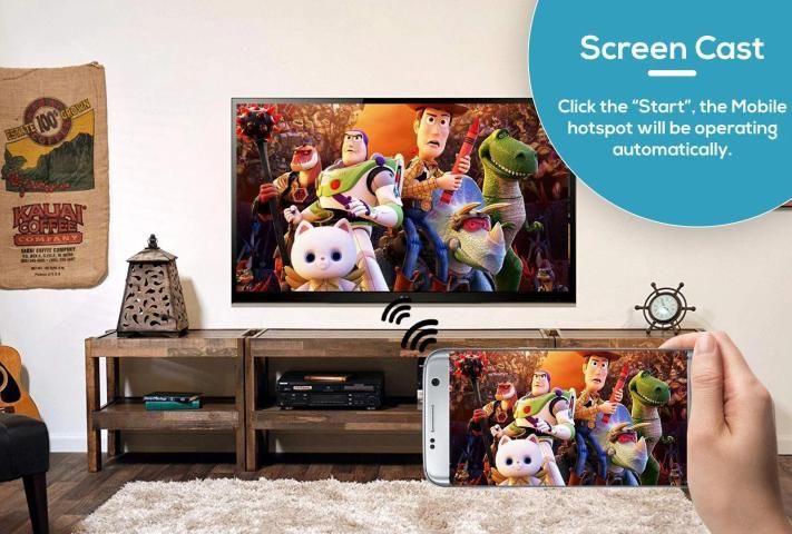 Screen Mirroring with TV - Mirror Screen does not need extra dongle or cable. Click the “Start”, the Mobile hotspot will be operating automatically. and After hotspot will be operating, connect to AP from other devices.