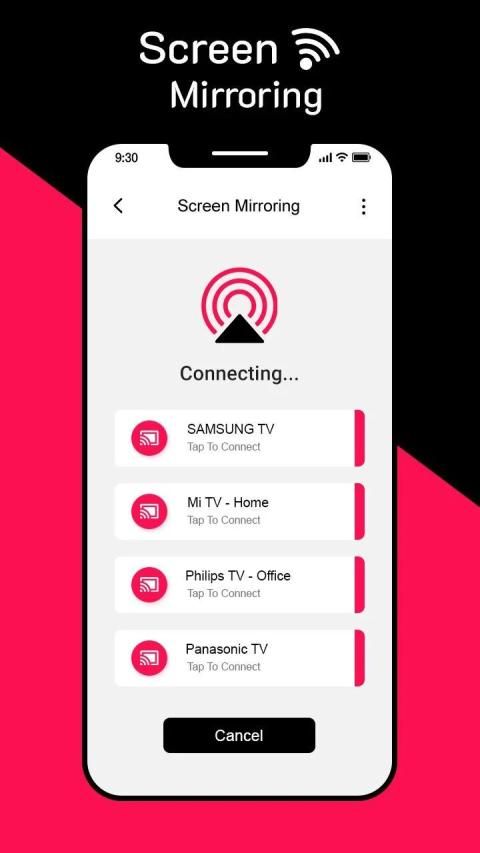 Screen Mirroring with TV App will assist you to scan and mirror your android phone or tab's screen on smart TV/Display or Wireless dongles or adapters.