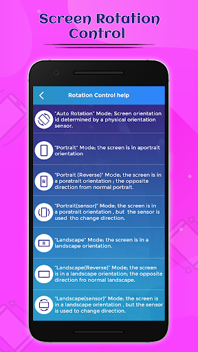स्क्रीन रोटेशन नियंत्रण & lt; & gt;विभिन्न रोटेशन मोड के साथ एक अद्भुत ऐप है जो बहुत अधिक उपयोगी हो सकता है। आप अपने फोन के अधिसूचना बार से स्क्रीन ओरिएंटेशन को आसानी से नियंत्रित कर सकते हैं क्योंकि यह एक्सेसिबिलिटी सर्विस का उपयोग करता है।