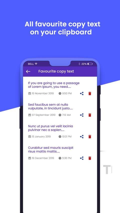 From history option you will get a list of all your copied and edited text along with date and time, if you want you can also remove it from history.
