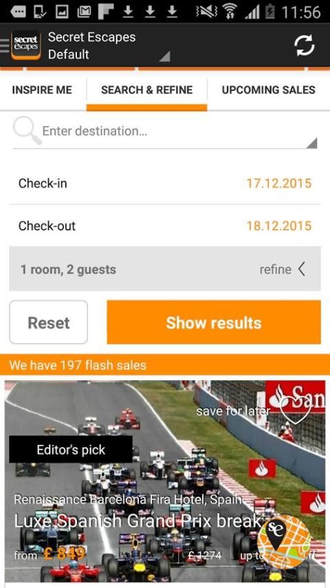 आपका नया गुप्त पलायन एप्लिकेशन दुनिया भर के स्थलों में से सैकड़ों की संख्या में, चार और पांच सितारा होटलों और छुट्टियों पर फ्लैश बिक्री के लिए उपयोग पर जाने की पेशकश की, यहाँ है।