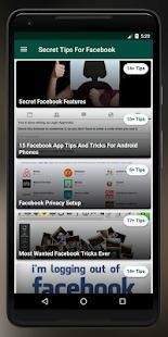 Secret Facebook Tips and Tricks: Fb messenger tips is the best app for you if you want to learn some cool things about Facebook. You will find lots of facebook tips and tricks. Tips and tricks for facebook best collections are in this facebook all tips app. Secret facebook tips are categorized into various tips sections. They are given below,