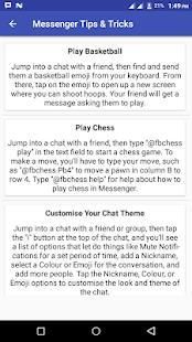 Secret Facebook Tips and Tricks - Messenger Tricks is the app that have complete solutions of all problems you may face on facebook. Also have secret tips and tricks of facebook and messenger. Have some amazing facebook facts that will blow your mind.