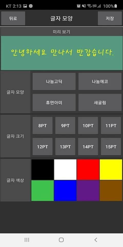 글자 모양과 배경을 원하는 대로 선택하여, 자신만의 아기저기한 노트를 만들 수 있습니다.