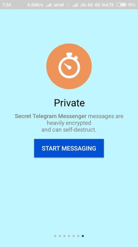 सभी टेलीग्राम संदेश हमेशा सुरक्षित रूप से एन्क्रिप्टेड होते हैं। गुप्त चैट में संदेश, ग्राहक ग्राहक एन्क्रिप्शन का उपयोग करते हुए बादल चैट क्लाइंट-सर्वर / सर्वर-ग्राहक एन्क्रिप्शन का उपयोग और टेलीग्राम बादल में एन्क्रिप्टेड भंडारित हो जाता है यह आपके क्लाउड संदेशों दोनों सुरक्षित और अपने किसी भी उपकरण से तुरंत सुलभ हो के लिए सक्षम बनाता - भले ही आप अपने डिवाइस को पूरी तरह खो देते हैं।