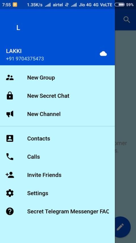 एंड्रॉयड: दाईं ओर स्वाइप करें मेनू, फिर 'नया गुप्त बातचीत' को खोलने के लिए।