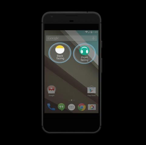 - वापस या सामने का कैमरा का उपयोग करते हुए होमस्क्रीन पर एक क्लिक के अनुप्रयोग शॉर्टकट के साथ रिकॉर्ड करने के लिए