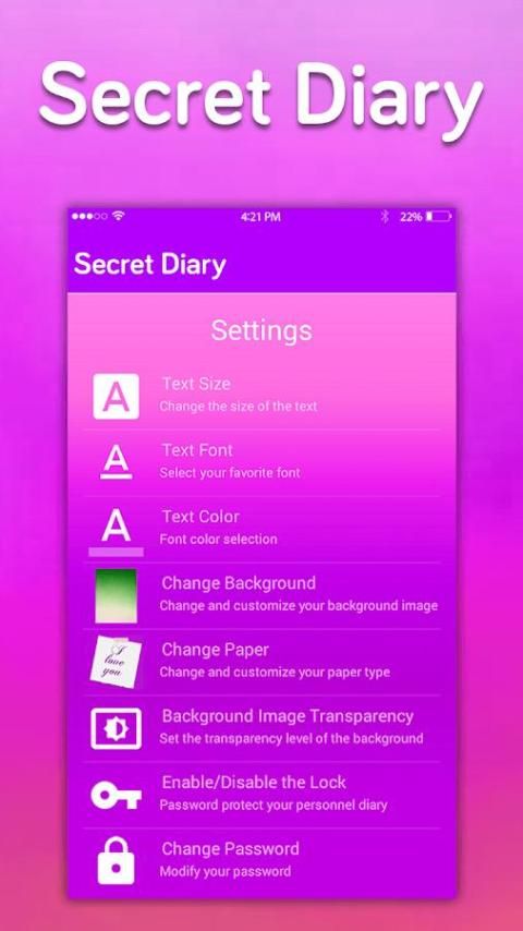 लॉक के साथ गुप्त डायरी अपने सभी रहस्यों को लॉक करना और कुछ महान सुविधाओं है कि इस डायरी आपको प्रदान करता है का लाभ लें: