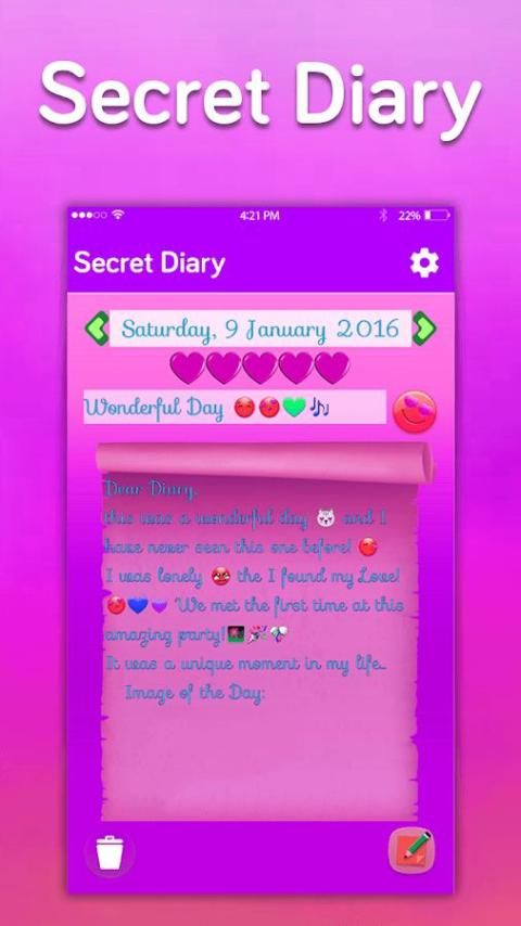 गुप्त डायरी बस इतनी है कि आप इसे के रूप में दिन जीवन की कहानी के लिए अपने दिन लिखने पर ध्यान केंद्रित कर सकते सरल और उपयोगकर्ता के अनुकूल होने के लिए बनाया गया था हो जाता।