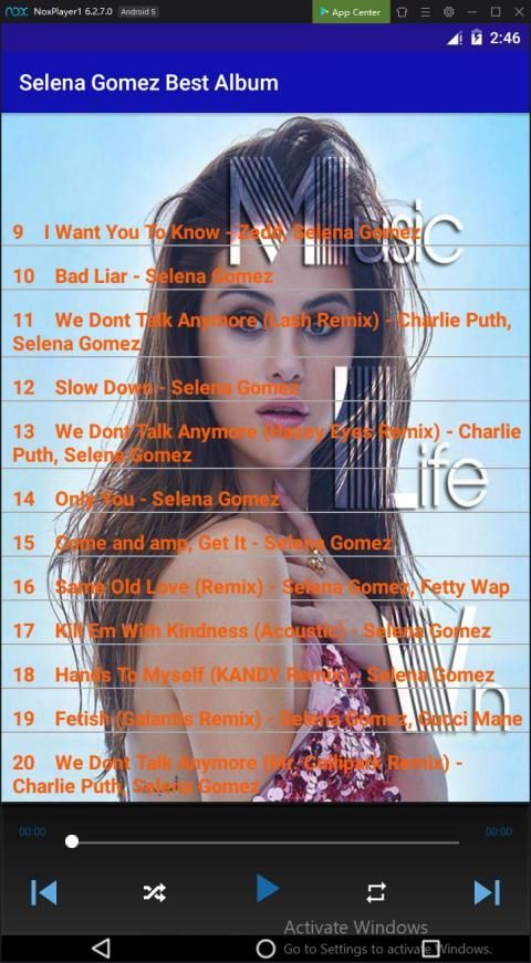Nếu bạn muốn nghe nhạc ngoại tuyến các bài hát của ca sĩ Âu Mỹ mình yêu thích, bạn có thể xem xét ứng dụng Selena Gomez Best Album .