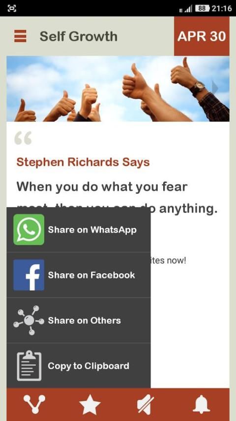 - शेयर सामाजिक नेटवर्क और अन्य संदेश उपकरणों का उपयोग करने पर दैनिक उद्धरण