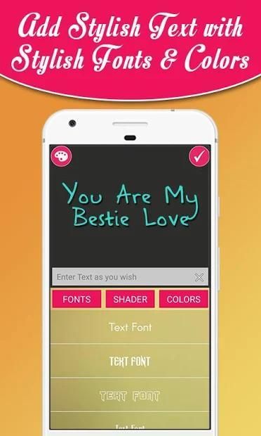 * Add text on photos with stylish fonts, text colors with rotate, zoom in, zoom out features.