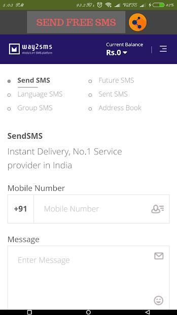 FREESMS is a FREE SMS Sending App. Users from INDIA or from anywhere in the world can Send UNLIMITED SMS to INDIAN MOBILES.