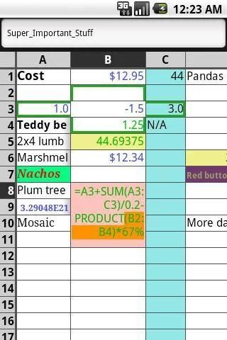 स्प्रेडशीट, या फैल शीट