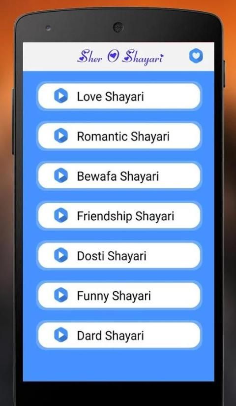 Some of the featured sections of this app are: "Bewafa Shayari", "Dard-e-Dil" or "Dard Shayari", "Sad Shayari", "Urdu Shayari" etc...