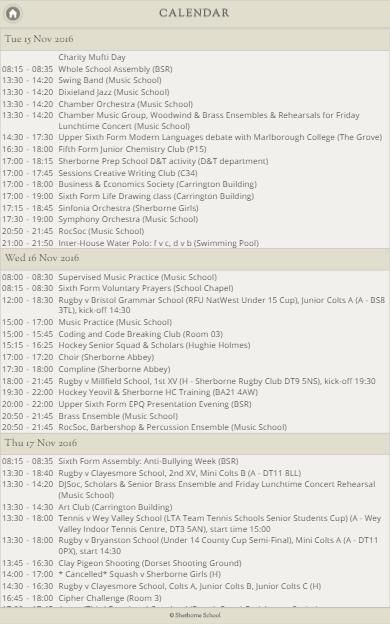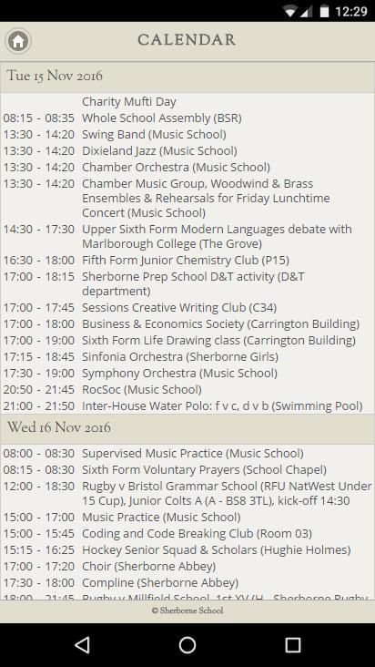 The Sherborne School App provides bespoke access to useful information for pupils, parents and staff. Information includes