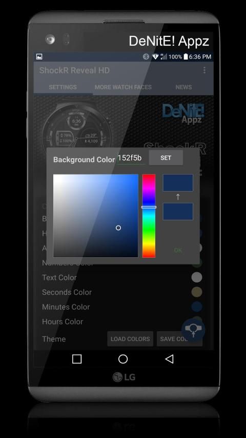 ✔ रंग पिकर आप पृष्ठभूमि, घड़ी हाथ, पाठ, और संख्या के लिए पसंद के किसी भी रंग का चयन करने