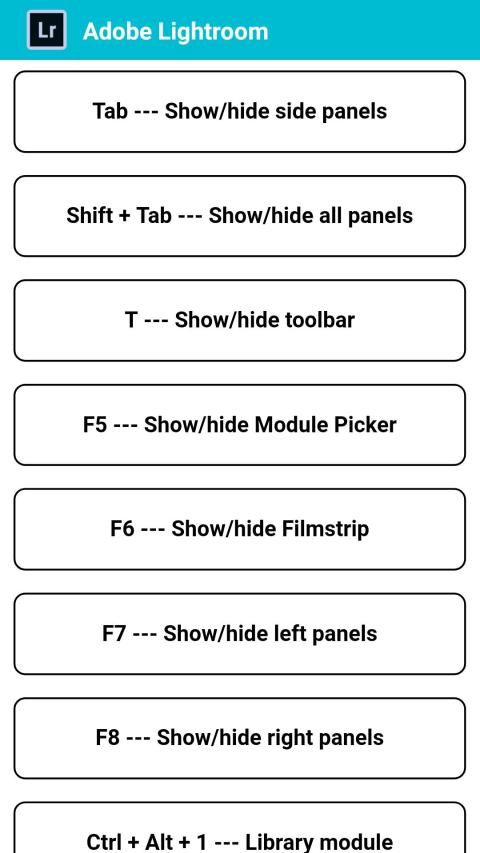 • एडोब लाइटरूम कीबोर्ड शॉर्टकट