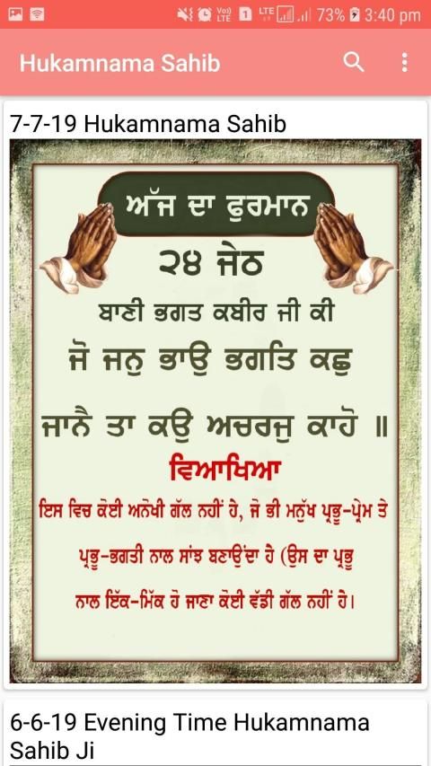 दैनिक हुकमनामा साहिब जी