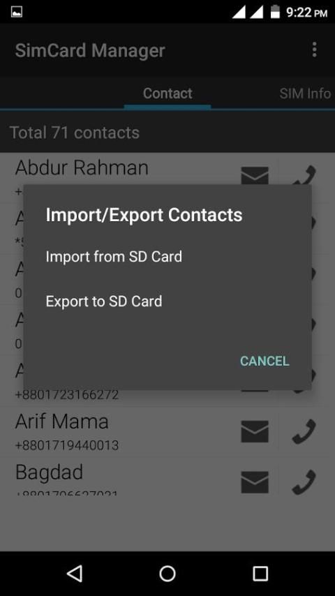 सिम कार्ड प्रबंधक अपने सिम कार्ड पढ़ता है और आप कई उपयोगी जानकारी दे कि एक छोटे से उपकरण है। यह भी आप, (कार्ड सिम को स्टोर) संपर्क को संशोधित करने या संपर्क (ओं) को हटाने के लिए एक नया संपर्क बनाते हैं, सिम कार्ड, आप सिम कार्ड पर संग्रहीत आपके सभी संपर्कों को देख सकते हैं आप में संपर्कों का प्रबंधन करने के लिए मदद करते हैं।