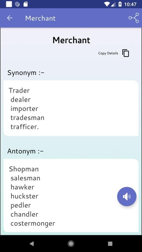 यदि आप विदेशी देशों की यात्रा कर रहे हैं, तो आप वाक्यांशों का उपयोग कर सकते हैं और यदि आप कुछ लिख रहे हैं और किसी शब्द के पर्यायवाची शब्द या एनटोनियम की आवश्यकता है, तो यह ऐप आपको उस मामले में मदद करेगा।