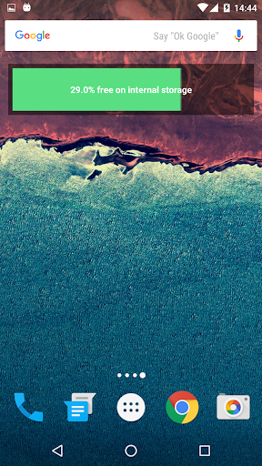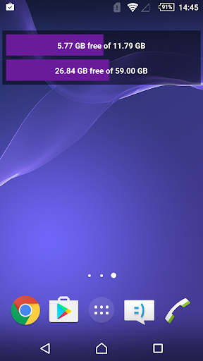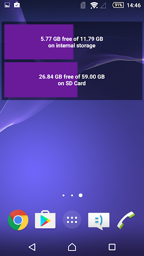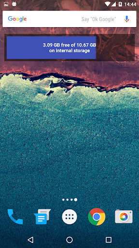 यह विजेट मूल रूप से आपको उपयोग की गई जगह के बारे में विस्तृत जानकारी के साथ आपके डिवाइस पर उपलब्ध स्टोरेज और टेक्स्ट संकेतों पर प्रयुक्त स्थान का एक साधारण ग्राफिक प्रतिनिधित्व दिखाता है।इसका उपयोग करने के लिए विजेट मेनू का उपयोग करके इसे बस अपनी होम स्क्रीन पर जोड़ें।ध्यान रखें कि इस विजेट में कोई भी स्क्रीन नहीं है जो आप लॉन्चर से लॉन्च कर सकते हैं।
